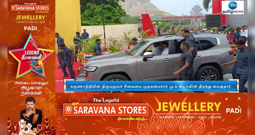 நாமக்கல் மாவட்டத்திற்கு வருகை தந்த முதலமைச்சர் மு.க. ஸ்டாலின், முன்னாள் முதல்வர் கருணாநிதியின் திருவுருவச் சிலையை திறந்து வைத்தார்.