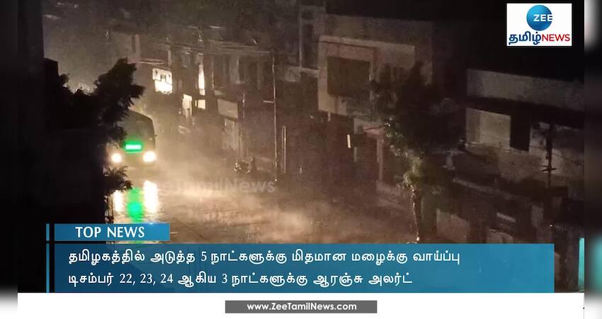 தமிழகத்தில் அடுத்த 5 நாட்களுக்கு மிதமான மழை பெய்ய வாய்ப்பு இருப்பதாக சென்னை வானிலை ஆய்வு மையம் தெரிவித்துள்ளது