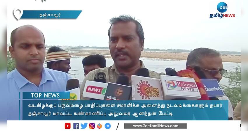 வடகிழக்குப் பருவமழை மற்றும் வெள்ள பாதிப்புகளில் இருந்து மக்களைக் காப்பாற்ற அனைத்து நடவடிக்கைகளும் தயாராக இருப்பதாக தஞ்சாவூர் மாவட்ட கண்காணிப்பு அலுவலர் ஆனந்தன் தெரிவித்துள்ளார்.