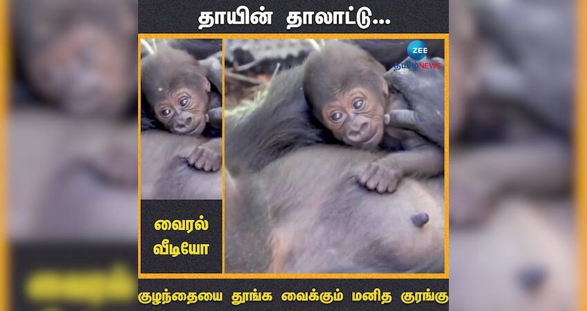 குழந்தையை அழகாக தூங்க வைக்கும் மனித குரங்கின் செயல் நெகிழ வைக்கிறது