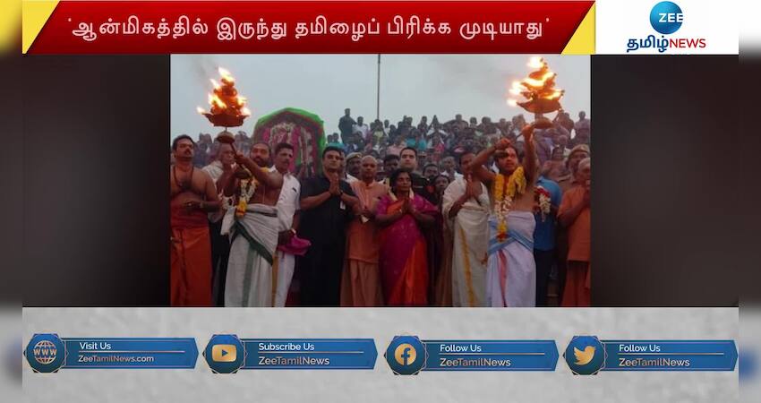 ஆன்மீகத்தையும் தமிழையும் பிரிக்க முடியாது என்றும், பிற மொழி திணிப்பிற்கு இடமில்லை எனவும் புதுச்சேரி ஆளுநர் தமிழிசை சவுந்திரராஜன் கூறினார்