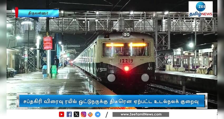 திருப்பதியில் இருந்து சென்னை நோக்கி வந்த சப்தகிரி விரைவு ரயில் ஓட்டுநருக்கு திடீரென உடல்நலக் குறைவு ஏற்பட்ட நிலையில் ஓட்டுநர் சாதுர்யமாக ரயிலை திருவள்ளூர் ரயில் நிலையத்தில் நிறுத்தியதால் நல்வாய்ப்பாக அசம்பாவிதம் தவிர்க்கப்பட்டது.