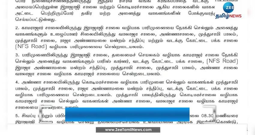 சுதந்திர தின அணிவகுப்பு ஒத்திகை காரணமாக சென்னையில் இன்று போக்குவரத்து மாற்றம் செய்யப்பட்டுள்ளது.
