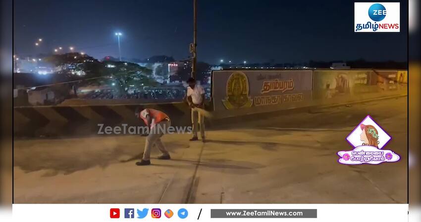 தாம்பரம் மேம்பாலத்தில் இருந்த மணல் கழிவுகளை போக்குவரத்து போலீஸார் சுத்தம் செய்யும் வீடியோ சமூக வலைதளங்களில் வைரலாகி பொதுமக்களிடையே பாராட்டைப் பெற்றுள்ளது.