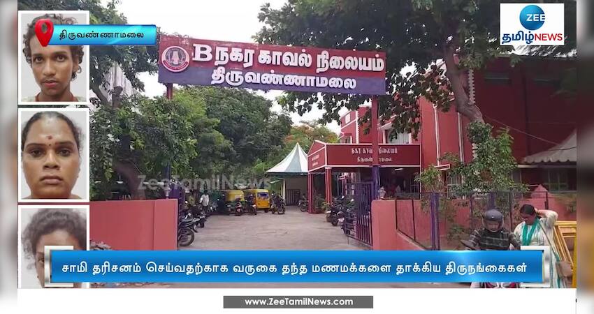 திருவண்ணாமலை அருணாச்சலேஸ்வரர் கோவிலுக்கு சாமி தரிசனம் செய்வதற்காக வருகை தந்த மணமக்களை திருநங்கைகள் ஒன்றுகூடி தகாத வார்த்தைகளால் பேசியும் அடித்தும் தாக்கிய சம்பவம் பெரும் பரபரப்பை ஏற்படுத்தியுள்ளது.