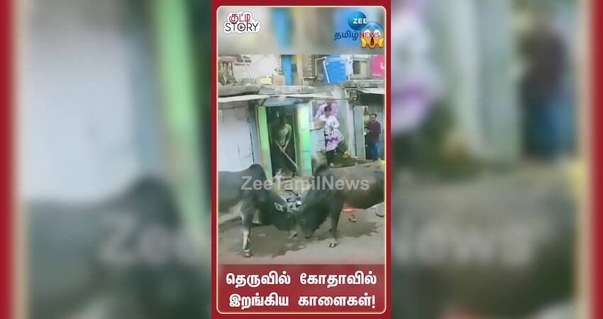 சீறும் காளைகளின் மோதலால் அமளி துமளியாகும் தெரு