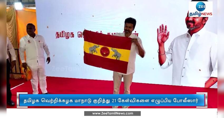 தமிழக வெற்றிக்கழக மாநாடு குறித்து 21 கேள்விகளை விக்கிரவாண்டி காவல்துறை கேட்டிருந்த நிலையில், நாளை பதில் அளிக்கப்படும் என த.வெ.க நிர்வாகிகள் தெரிவித்துள்ளனர்.