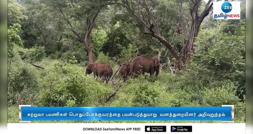 பொள்ளாச்சி வனப்பகுதியில் சாலையில் குட்டிகளுடன் காட்டு யானைகள் உலா வருவதால் சுற்றுலாப் பயணிகள் இருசக்கர வாகனங்களில் செல்ல வனத்துறையினர் தடைவிதித்துள்ளனர்.