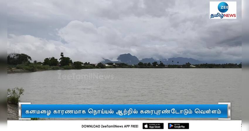 நொய்யல் ஆற்றில் கரைபுரண்டோடும் வெள்ளத்தால் தரை தட்டும் அளவுக்கு உக்கடம் ஏரியின் நீர் மட்டம் உயர்ந்துள்ளது.