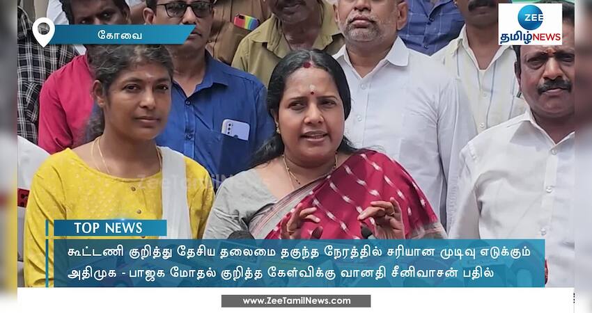 நாடாளுமன்ற தேர்தல் கூட்டணி குறித்து தேசிய தலைமை தகுந்த நேரத்தில் சரியான முடிவு எடுக்கும் என வானதி சீனிவாசன் தெரிவித்துள்ளார்.