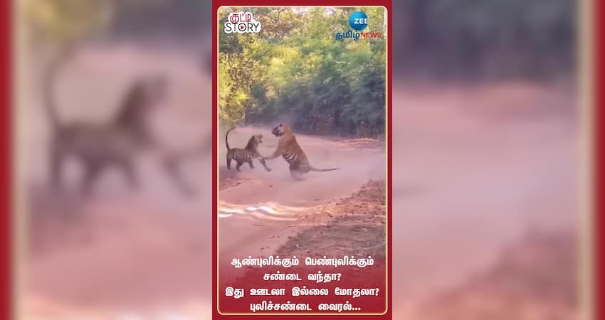 ஆண்புலிக்கும் பெண்புலிக்கும் சண்டை வந்தா? இது ஊடலா இல்லை மோதலா? புலிச்சண்டை வைரல்...