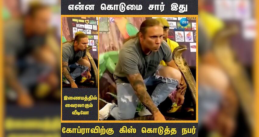 கோப்ரா பாம்பிற்கு ஒருவர் முத்தம் கொடுக்கும் வீடியோ வைரலாகி வருகின்றது.