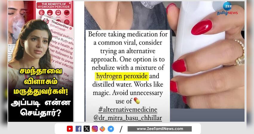 ஹைட்ரஜன் பெராக்சைடு குறித்து சமந்தா தனது இன்ஸ்டாகிராமில் புகைப்படத்துடன் பதிவிட்டிருந்தது சமூக வலைதளங்களில் சர்ச்சையை கிளப்பியுள்ளது. என்ன தான் விவரம் என்பதை காணலாம்.
