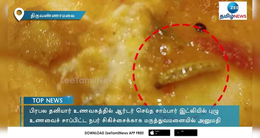 பிரபல தனியார் உணவகத்தில் ஆர்டர் செய்த சாம்பார் இட்லியில் புழு