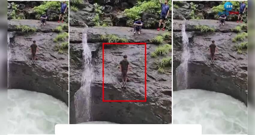 புனே நீர்வீழ்ச்சியில் அடித்து செல்லப்பட்ட இளைஞர். சமூக வளைதளத்தில் வேகமாக பரவும் பரபரப்பு வீடியோ காட்சி.