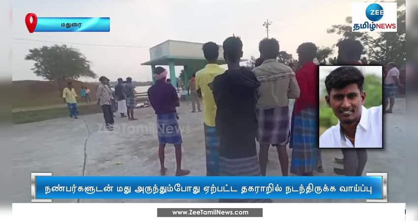 மதுரையில் நண்பர்களுடன் மது அருந்தும்போது ஏற்பட்ட தகராறில் தலையில் கல்லைப் போட்டு வாலிபர் கொலை செய்யப்பட்ட நிலையில், போலீஸார் விசாரணை மேற்கொண்டு வருகின்றனர்.