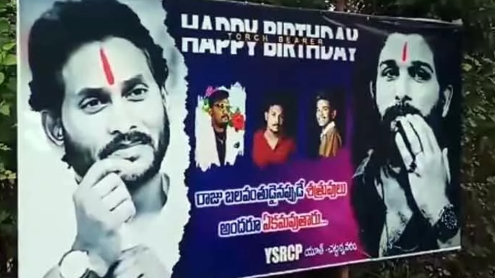 Allu Arjun photos in ys jagan birthday celebrations flexy goes viral: అల్లు అర్జున్ పుష్ప2 మూవీ ఇటీవల ప్రపంచంలో ఒక రేంజ్ లో రికార్డులు క్రియేట్ చేసుకుంటూ ముందుకు వెళ్లిపోతుంది. అయితే.. ఈ మూవీ ప్రస్తుతం వివాదాల పరంగా కూడా అంతే వార్తలలో ఉంటుంది. ముఖ్యంగా అశోక్ నగర్ లోని సంధ్య థియేటర్ దగ్గర జరిగిన తొక్కిసలాట ఘటనలో రేవతి అనే మహిళ చనిపోయిన విషయం తెలిసిందే. ఆమె కుమారుడు శ్రీతేజ్ ప్రస్తుతం కిమ్స్ లో వెంటిలెటర్ మీద చికిత్స తీసుకుంటున్నాడు.