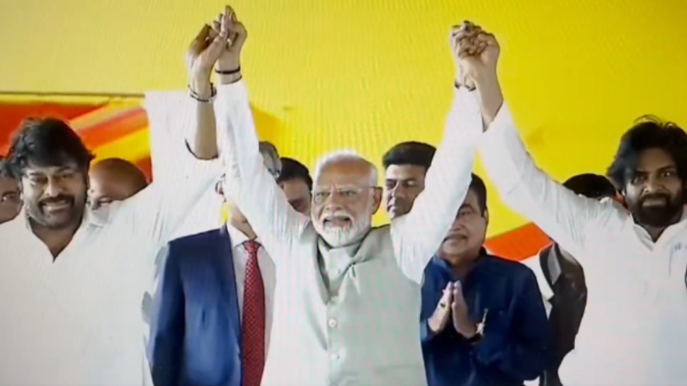 ముందుగా ఆంధ్ర ప్రదేశ్ గవర్నర్ అబ్దుల్ నజీర్ .. చంద్రబాబు నాయుడుతో ముఖ్యమంత్రిగా ప్రమాణ స్వీకారం చేయించారు. ఆ తర్వాత పవన్ కళ్యాణ్, నారా లోకేష్, అచ్చెంనాయుడు సహా మిగిలిన 24 మంత్రులు వరుసగా ఏపీ మంత్రులుగా ప్రమాణ స్వీకారం చేసారు. ఈ కార్యక్రమం అనంతరం ప్రధాన మంత్రిపై వేదికపై ఉన్న తన కేబినేట్ సహచరులతో పాటు ఎన్డీయే పక్ష నేతలను పలకరించారు. ఈ సందర్బంగా నరేంద్ర మోడీ పవన్ కళ్యాణ్, చిరంజీవిలను వేదికపై తీసుకొచ్చి పైకి చేతులెత్తి అభివాదం చేసారు. ఈ సందర్బంగా కూటమి విజయంతో పాటు పవన్ కళ్యాణ్ మరియు చిరంజీవిలపై అనుకున్న ఆప్యాయతను నరేంద్ర మోడీ అలా చాటుకున్నారు.
