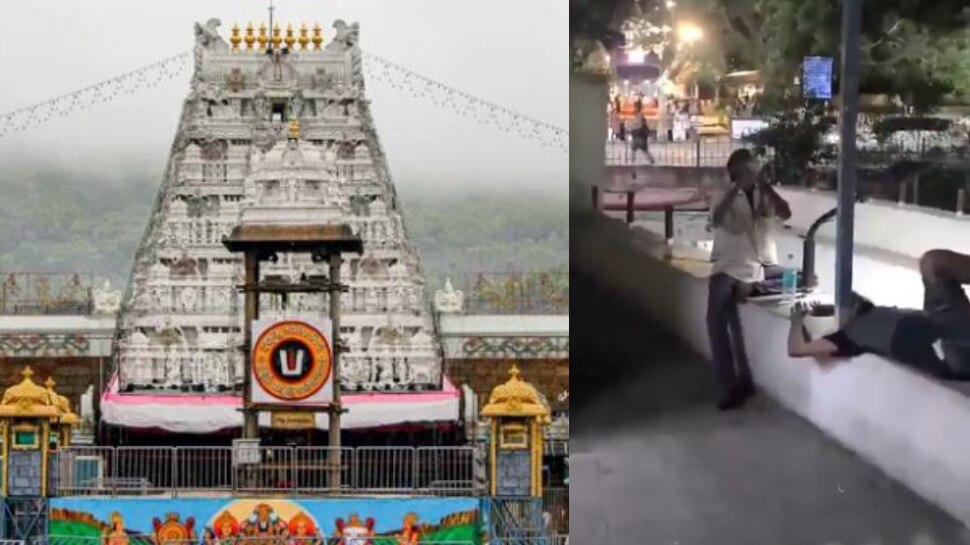 ఒకవైపు భక్తులు గుంపులుగా తిరుమల శ్రీవారి దర్శనానికి వెళ్తున్నారు. మరోవైపు కొంత మంది వ్యక్తులు పిట్టగొడమీద కూర్చుని మద్యంతాగుతున్నారు. అక్కడున్న కొంత మంది వీడియోలు తీసి సోషల్ మీడియాలో పోస్ట్ చేయడంతో ఇది కాస్త వైరల్గా మారింది.