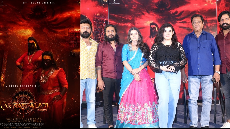 Karmasthalam Movie First Look: మహిషాసుర మర్దిని కాన్సెప్ట్తో రాకీ షెర్మన్ దర్శకత్వంలో తెరకెక్కిన మూవీ కర్మ స్థలం. రాయ్ ఫిల్మ్స్ బ్యానర్పై శ్రీనివాస్ సుబ్రహ్మణ్య నిర్మించారు. అర్చన శాస్త్రి, మితాలి చౌహాన్, వినోద్ అల్వా, కలకేయ ప్రభాకర్, బాలగం సంజయ్, నాగ మహేష్, దిల్ రమేష్, చిత్రం శ్రీను తదితరులు కీలక పాత్రలు పోషించారు. పాన్ ఇండియా స్థాయిలో రూపొందిస్తుండగా.. తాజాగా ఈ మూవీ ఫస్ట్ లుక్ పోస్టర్ను మేకర్స్ రిలీజ్ చేశారు. పోస్టర్లో పాత్రలు, డిజైన్ అదిరిపోయాలా ఉంది. బ్యాక్ గ్రౌండ్లో అమ్మవారి షాడో చూస్తుంటే.. వీఎఫ్ఎక్స్ ఓ రేంజ్లో వాడినట్లు తెలుస్తోంది. ఫస్ట్ లుక్ పోస్టర్తోనే మూవీపై అంచనాలు క్రియేట్ చేశారు.