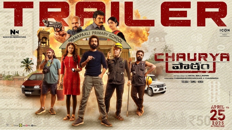 ట్రైలర్ విషయానికి వస్తే.. ధనపల్లి అనే గ్రామంలో బ్యాంక్ దొంగతనం బ్యాక్డ్రాప్లో తెరకెక్కించినట్లు అర్థమవుతోంది. ఓ ముఠాకు అక్కడ ఎలాంటి అనుభవాలు ఎదురయ్యాయనేదే చౌర్యపాఠం. ట్రైలర్ను కామెడీతో పాటు కథను లైటర్ వీన్లో అర్థమయ్యేలా చక్కగా కట్ చేశారు. హీరో ఇంద్రరామ్ తనకు మొదటి సినిమా అయినా.. చక్కటి హవాభావాలు పలికించాడు. డైలాగ్ డెలవరీ సెట్ అయింది. డేవ్ నేపథ్య సంగీతం చాలా బాగుంది. నిర్మాణ విలువలు కూడా ఉన్నతంగా ఉన్నాయి. త్రినాథరావు నక్కిన ఎక్కడా కాంప్రమైజ్ కాకుండా నిర్మించినట్లు అర్థమవుతోంది. ట్రైలర్తో మరిన్ని అంచనాలు క్రియేట్ చేశారు మేకర్స్. సెన్సార్ కార్యక్రమాలు పూర్తవ్వగా తెలుగుతోపాటు తమిళం, హిందీ భాషల్లో కూడా ఏప్రిల్ 25న ఆడియన్స్ ముందుకు తీసుకురానున్నారు.