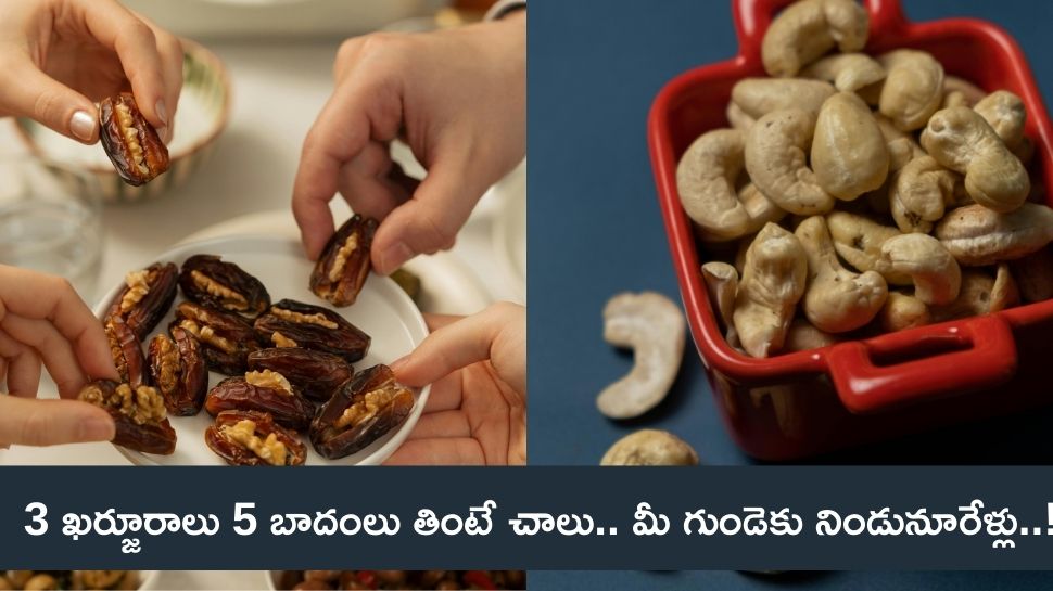 Dates And Cashew Benefits: ఖర్జూరం జీడిపప్పులో అనేక రకాల విటమిన్స్, మినరల్స్, యాంటీ ఆక్సిడెంట్లు ఉంటాయి. అవి ఎన్నో ఏళ్లుగా ఆయుర్వేద పరంగా ఉపయోగిస్తున్నారు. మన పూర్వీకుల డైట్లో కూడా ఉన్నాయి. ఇది మెదడు పనితీరును మెరుగు చేసి గుండె ఆరోగ్యానికి తోడ్పడతాయి. ప్రతిరోజు మూడు ఖర్జూరాలు ఐదు బాదం పప్పులు తీసుకోవడం వల్ల కలిగే ఆరోగ్య ప్రయోజనాలు ఇవే..