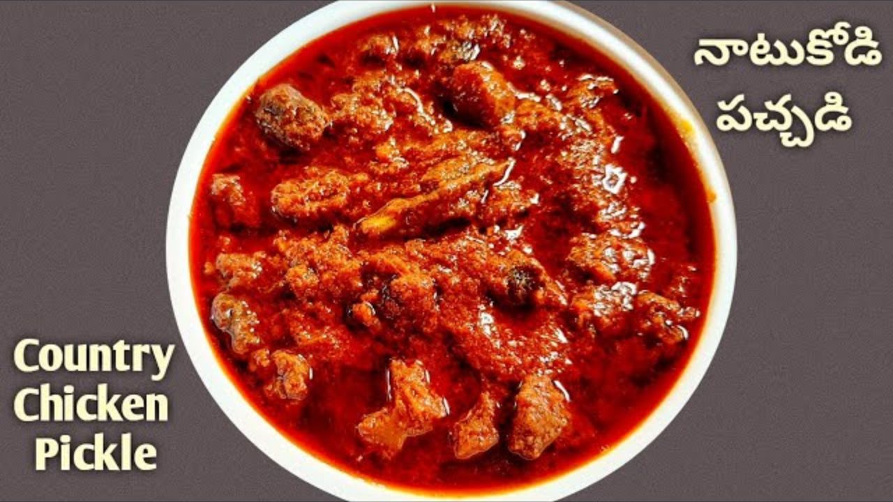 ఎండు మిరపకాయలను నూనెలో వేయించి, చల్లారిన తర్వాత మిక్సీలో పొడి చేసుకోవాలి. ఒక పాత్రలో నాటుకోడి ముక్కలు, ఉప్పు, పసుపు వేసి నీరు పోసి మగ్గవరకు ఉడికించాలి. నీరు ఆరిన తర్వాత కోడి ముక్కలను మరొక పాత్రలోకి తీసుకోవాలి. ఒక కడాయిలో నూనె వేసి వేడి చేసి, ఆవాలు, జీలకర్ర, దాల్చిన చెక్క, లవంగాలు వేసి పోపు చేయాలి. పోపులో అల్లం వెల్లుల్లి పేస్ట్, మిరపకాయల పొడి, గరం మసాలా వేసి వేగించాలి. తర్వాత ఉడికించిన నాటుకోడి ముక్కలు, కొత్తిమీర, కరివేపాకు వేసి బాగా కలపాలి. ఈ పచ్చడిని గాజు బాటిల్లో నింపి, బాగా మూసి వెలుతురు పడని చోట నిల్వ చేయాలి.
