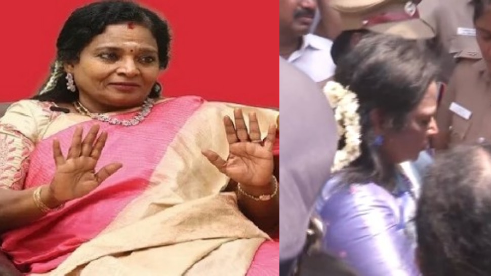 Tamili sai soundararajan Arrested video: తమిళనాడులో ఇటీవల సీఎం స్టాలీన్ హింది భాషపై మండిపడుతున్నారు. హింది భాషఅనేక స్థానిక భాషల్ని నిర్వీర్యం చేస్తుందని తీవ్రమైన ఆరోపణలు చేస్తున్నారు. బహిరంగంగానే.. హిందిపైన తమ వ్యతిరేకతను బైటపెట్టారు. ఈ క్రమంలో తాజాగా.. తమిళనాడులో త్రిభాష విధానానికి మద్దతుగా బీజేపీ నేత అన్నామలై, తెలంగాణ మాజీ సీఎం తమిళి సై సైతం.. ఎంజీఆర్ నగర్ లో సంతకాల సేకరణ కార్యక్రమంను నిర్వహించారు.