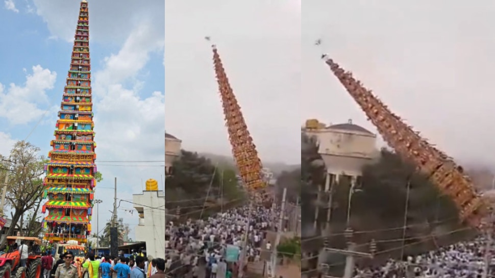 ఈ క్రమంలో దొడ్డనాగ మంగళ గ్రామంలో.. హుస్కుర్ మద్దురమ్మ జాతరకు ఏర్పాట్లు చేస్తున్నారు. ఇటీవల అమ్మవారి ఊరేగింపు కోసం 120 అడుగుల భారీ రథాన్ని తీసుకొని వస్తున్నారు. అప్పటికే అక్కడ వాతావరణం అస్సలు బాగాలేదు. బలమైన ఈదురుగాలులు వస్తున్నాయి. అది కూడా ఏళ్లనాటి రథం కావడంతో భక్తులు ఎంతో జాగ్రత్తగా దాన్ని తీసుకొని వస్తున్నారు.