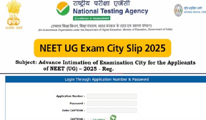 ముందుగా ఎన్టీఏ అధికారిక వెబ్సైట్ https://neet.nta.nic.in/ ఓపెన్ చేయాలి. అందులో అడ్వాన్స్ సిటీ ఇంటిమేషన్ ఫర్ నీట్ యూజీ 2025 అనే లింక్ ఉంటుంది. అది క్లిక్ చేసిన తరువాత కొత్త విండో ఓపెన్ అవుతుంది. అందులో నీట్ అప్లికేషన్ నెంబర్, పాస్వర్డ్ ఎంటర్ చేసి క్యాప్చా నమోదు చేస్తే చాలు. నీట్ యూజీ 2025 పరీక్ష సిటీ ఇంటిమేషన్ స్లిప్ ప్రత్యక్షమౌతుంది. డౌన్లోడ్ చేసుకుని సేవ్ చేసుకోవాలి.