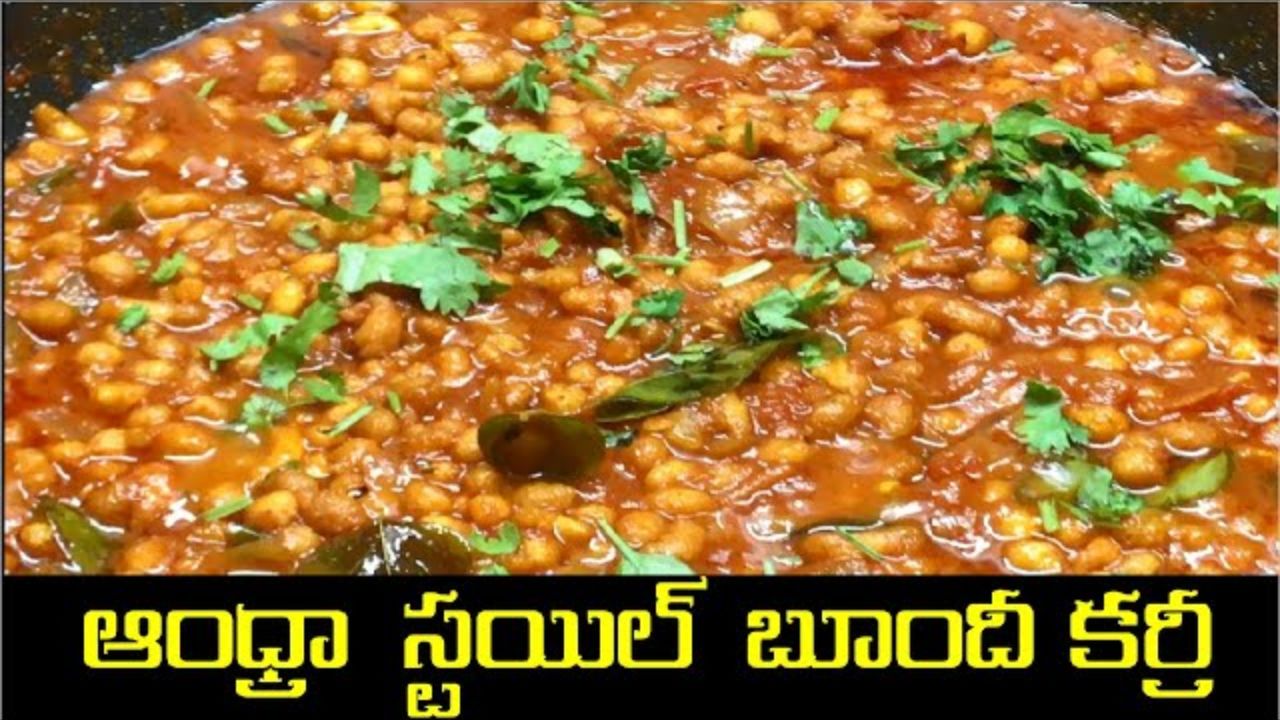 ముందుగా, ఒక పాన్ లో నూనె వేడి చేయాలి. నూనె వేడెక్కిన తర్వాత, ఉల్లిపాయ వేసి బంగారు రంగు వచ్చే వరకు వేయించాలి. తర్వాత, టమాటా, పచ్చిమిర్చి వేసి మెత్తబడే వరకు వేయించాలి. అల్లం వెల్లుల్లి పేస్ట్ వేసి ఒక నిమిషం పాటు వేయించాలి. కారం, ధనియాల పొడి, జీలకర్ర పొడి, పసుపు వేసి బాగా కలపాలి. నీరు పోసి మరిగించాలి. బూందీ వేసి బాగా కలపాలి. ఉప్పు వేసి రుచికి తగినంత ఉప్పు వేసి కలపాలి. కూరను మూత పెట్టి 5 నిమిషాలు ఉడికించాలి. వేడి వేడిగా అన్నం లేదా చపాతీతో సర్వ్ చేయాలి.