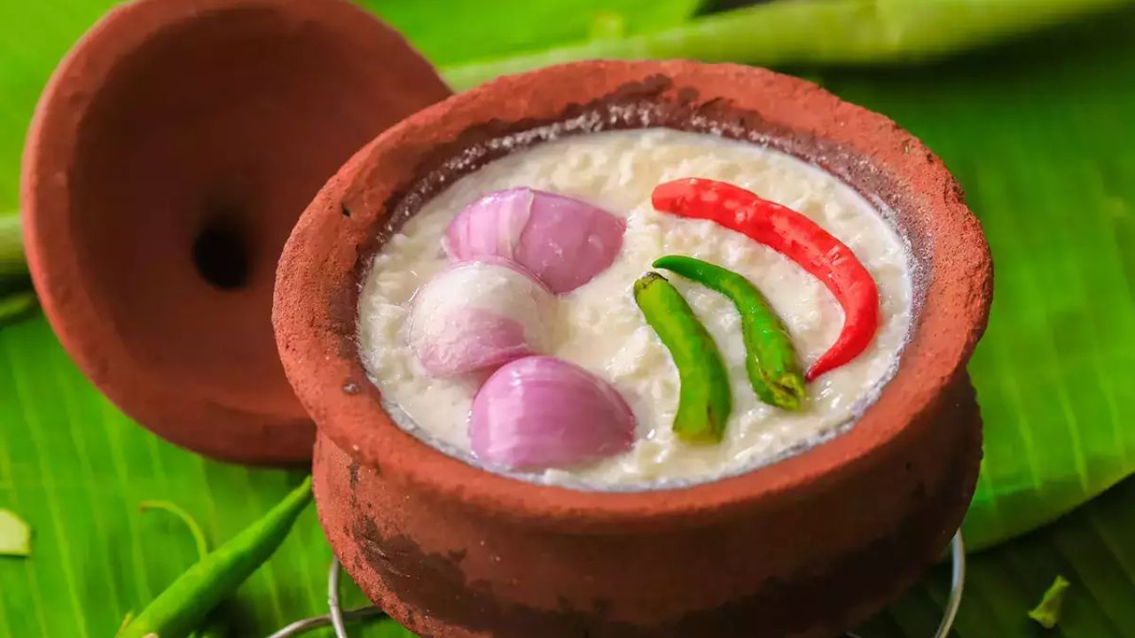 తయారీ విధానం: ముందుగా మీరు పులియబెట్టాలనుకుంటున్న అన్నం తీసుకోండి. ఇది తాజాగా వండిన అన్నం కావచ్చు లేదా నిన్నటి మిగిలిన అన్నం కూడా కావచ్చు. తీసుకున్న అన్నాన్ని ఒక మట్టి కుండలో లేదా ఏదైనా శుభ్రమైన గిన్నెలో వేయండి. మట్టి కుండలో పులియబెడితే రుచి మరింత బాగుంటుందని అంటారు. అన్నం పూర్తిగా మునిగేంత వరకు శుద్ధమైన నీటిని పోయండి. అన్నంపై కనీసం ఒక అంగుళం ఎత్తు వరకు నీరు ఉండాలి. గిన్నెకు మూత పెట్టండి. మూత గట్టిగా ఉండాల్సిన అవసరం లేదు, దుమ్ము లేదా ఇతర కణాలు పడకుండా ఉంటే చాలు. గిన్నెను గది ఉష్ణోగ్రత వద్ద కనీసం 8 నుండి 12 గంటల పాటు లేదా రాత్రంతా పులియబెట్టడానికి వదిలివేయండి. వాతావరణం వేడిగా ఉంటే, పులియబెట్టే సమయం కొంచెం తక్కువ పట్టవచ్చు. చల్లని వాతావరణంలో ఎక్కువ సమయం పట్టవచ్చు. పులియబెట్టిన తర్వాత అన్నం కొద్దిగా మెత్తగా మారుతుంది, కొంచెం పుల్లని వాసన వస్తుంది. నీరు కొద్దిగా చిక్కగా మారవచ్చు. పులియబెట్టిన అన్నం తినడానికి సిద్ధంగా ఉంటుంది.