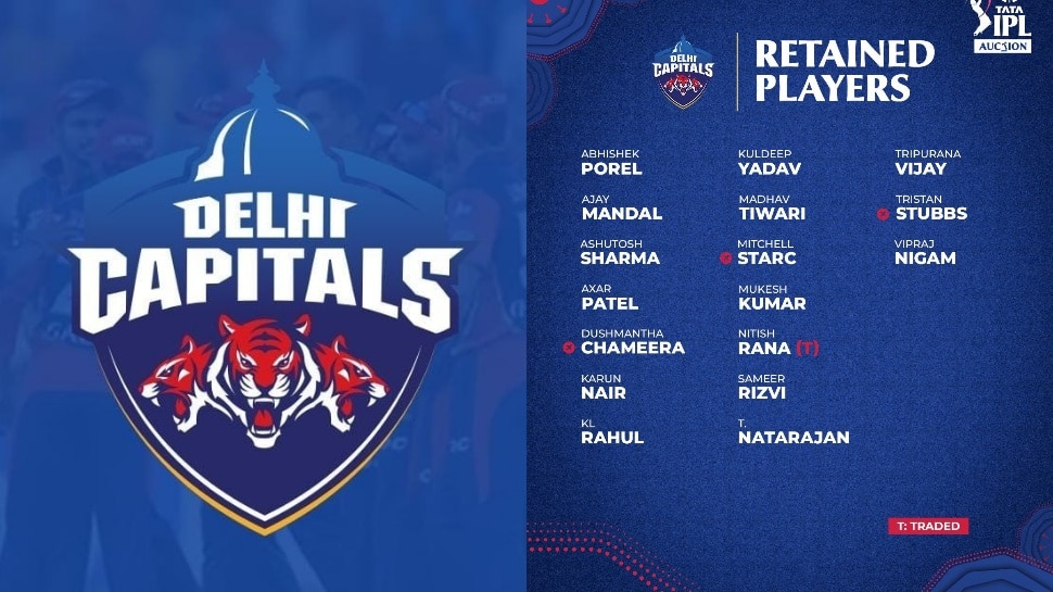 ఢిల్లీ క్యాపిటల్స్ (DC) రిటెన్షన్ ప్లేయర్ల లిస్ట్: అభిషేక్ పోరెల్, కుల్దీప్ యాదవ్, త్రిపురాణ విజయ్, అజయ్ మండల్, మాధవ్ తివారి, ట్రిస్టన్ స్టబ్స్, అశుతోశ్ శర్మ, మిచెల్ స్టార్క్, విప్రజ్ నిగమ్, అక్షర్ పటేల్, ముకేశ్ కుమార్, దుష్మంత చమీర, నితీశ్ రాణా (రాజస్థాన్ నుంచి ట్రేడింగ్), కరుణ్ నాయర్, సమీర్ రిజ్వి, కేఎల్ రాహుల్, టి. నటరాజన్.