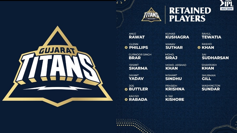 గుజరాత్ టైటాన్స్ (GT) రిటెన్షన్ రిటెన్షన్ ప్లేయర్ల లిస్ట్: శుబ్మన్ గిల్, సాయి సుదర్శన్, జోస్ బట్లర్ (వికెట్ కీపర్), షారుఖ్ ఖాన్, కుమార్ కుశాగ్రా (వికెట్ కీపర్), అనూజ్ రావత్ (వికెట్ కీపర్), వాషింగ్టన్ సుందర్, రషీద్ ఖాన్, రాహుల్ తెవాటియా, నిషాంత్ సింధు, గ్లెన్ ఫిలిప్స్, అర్షద్ ఖాన్, మొహమ్మద్ సిరాజ్, ప్రసిద్ కృష్ణ, సాయి కిశోర్, కగిసో రబడ, ఇషాంత్ శర్మ, జయంత్ యాదవ్, గుర్నూర్ బ్రార్, మానవ్ సుతార్.