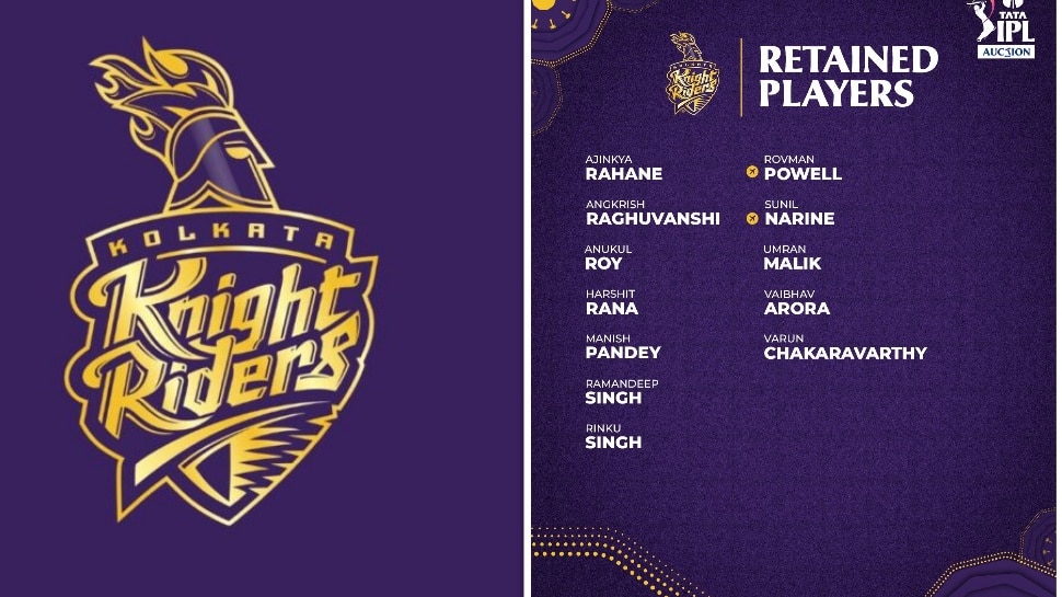 కోల్కతా నైట్ రైడర్స్ (KKR) రిటెన్షన్ ప్లేయర్ల లిస్ట్: అజింక్య రహానే, రోవ్మన్ పావెల్, అంగ్క్రిష్ రఘువన్షి, సునిల్ నరైన్, అనుకుల్ రాయ్, ఉమ్రాన్ మాలిక్, హర్షిత్ రాణా, వైభవ్ అరోరా, మనీశ్ పాండే, వరుణ్ చక్రవర్తి, రమణ్దీప్ సింగ్, రింకూ సింగ్.