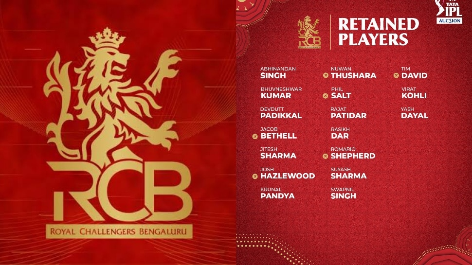 రాయల్ ఛాలెంజర్స్ బెంగళూరు (RCB) రిటెన్షన్ ప్లేయర్ల లిస్ట్: విరాట్ కోహ్లీ, అభినందన్ సింగ్, నువాన్ తుషార, రజత్ పాటిదార్, టిమ్ డేవిడ్, భువనేశ్వర్ కుమార్, ఫిలిప్ డీన్ సాల్ట్, దేవ్దత్ పడిక్కల్, యష్ దయాళ్, జాకబ్ బెథెల్, రాశిఖ్ దార్, జితేష్ శర్మ, రొమారియో షెపర్డ్, జోష్ హాజిల్వుడ్, సుయాష్ శర్మ, కృనాల్ పాండ్యా, స్వప్నిల్ సింగ్.