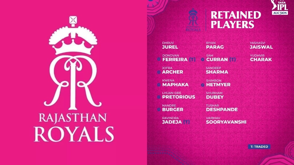 రాజస్థాన్ రాయల్స్ (RR) రిటెన్షన్ ప్లేయర్ల లిస్ట్: వీరేధ్రువ్ జురెల్, రియాన్ పరాగ్, యశస్వి జైస్వాల్, డొనొవాన్ ఫెరీరా (ట్రేడింగ్), సామ్ కర్రాన్ (ట్రేడింగ్), యుధ్వీర్ చరక్, జోఫ్రా ఆర్చర్, సందీప్ శర్మ, క్వెనా మఫాక, షిమ్రన్ హెట్మెయిర్, లువాన్ డ్రి ప్రిటోరియస్, శుభమ్ దూబే, నండ్రీ బర్గర్, తుషార్ దేశ్పాండే, రవీంద్ర జడేజా (ట్రేడింగ్), వైభవ్ సూర్యవంశీ.