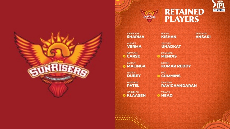 సన్రైజర్స్ హైదరాబాద్ (SRH) రిటెన్షన్ ప్లేయర్ల లిస్ట్: ప్యాట్ కమిన్స్, అభిషేక్ శర్మ, హెన్రిచ్ క్లాసెన్, ట్రవిస్ హెడ్, నితీశ్ కుమార్ రెడ్డి, ఇషాన్ కిషన్, హర్షల్ పటేల్, జయదేవ్ ఉనాద్కట్, స్మరణ్ రవిచంద్రన్, అనికేత్ వర్మ, జీషన్ అన్సారీ, హర్ష్ దూబే, కమిందు మెండిస్, ఇషాన్ మలింగ, బ్రైడన్ కార్స్.