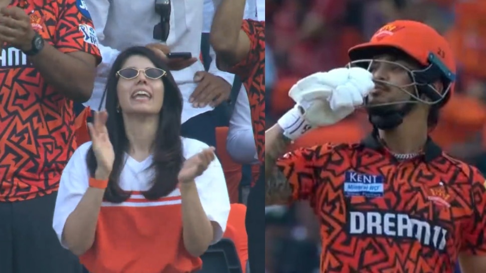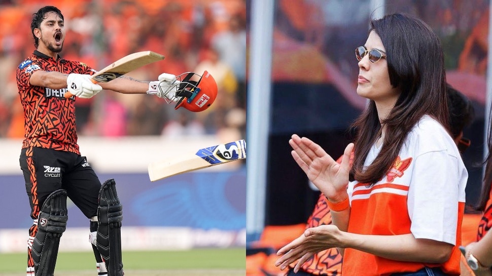 Ishan Kishan Flying to Kiss Kavya Maran: గత సీజన్లో భారీ స్కోర్లతో చెలరేగిన సన్రైజర్స్ హైదరాబాద్.. ఈ సీజన్లో తొలి మ్యాచ్తోనే ప్రత్యర్థులకు గట్టి హెచ్చరికలు పంపింది. రాజస్థాన్ రాయల్స్తో జరిగిన మ్యాచ్లో 20 ఓవర్లలో 6 వికెట్ల నష్టానికి 286 పరుగులు చేసి.. మరోసారి 300 రన్స్కు చేరువగా వచ్చింది. అనంతరం ఛేజింగ్లో రాజస్థాన్ 242 పరుగులకు పరిమితం కావడంతో ఎస్ఆర్హెచ్ 44 పరుగుల తేడాతో విజయం సాధించింది. ఇక మ్యాచ్లో ఇషాన్ కిషన్ సెంచరీతో చెలరేగడంతో సన్రైజర్స్ భారీ స్కోరు చేసింది. సెంచరీ అనంతరం ఇషాన్ కిషన్ ఫ్లయింగ్ కిస్ ఇవ్వగా.. టీమ్ ఓనర్ కావ్యమారన్ చప్పట్లతో ఆనందం వ్యక్తం చేశారు. ఇందుకు సంబంధించిన వీడియో నెట్టింట తెగ వైరల్ అవుతోంది.