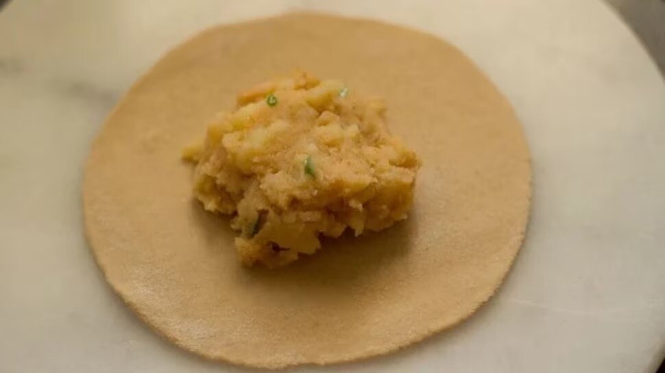 ముందుగా రెడీ చేసుకున్న చపాతీ పిండిని రుద్ది చపాతి సైజు రెడీ చేసుకోవాలి. దానిపై బంగాళదుంపలు మెత్తగా చేసుకున్న మిశ్రమాన్ని రెడీ చేసిన పచ్చి చపాతిపై స్ప్రెడ్ చేసి.. ఆ తర్వాత దానిపై మరోకటి వేసి మధ్యలో ఆలూ స్మాష్ వచ్చేలా చేయాలి.