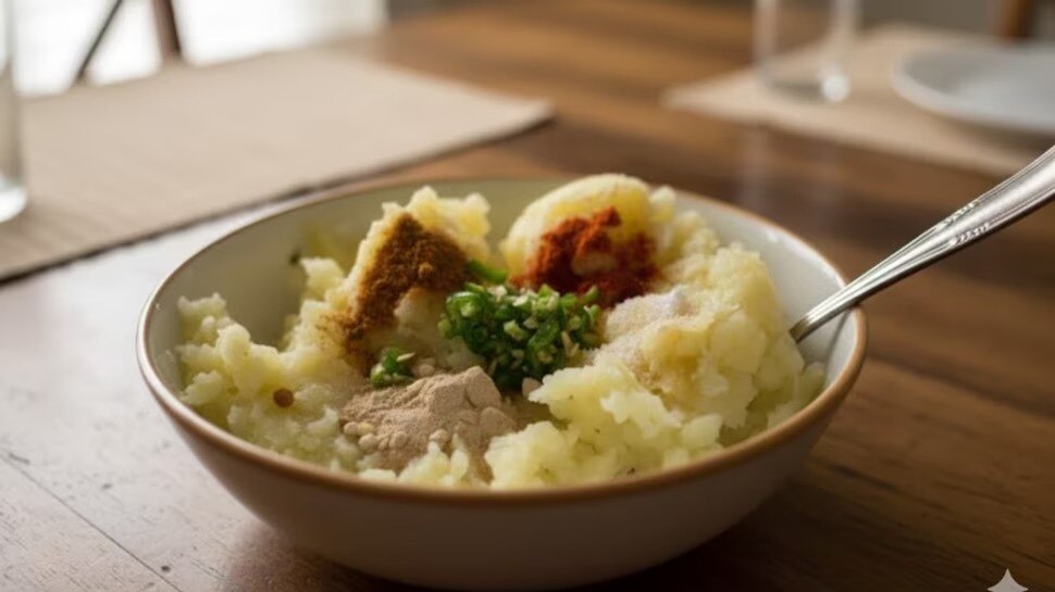 ఆ వెంటనే మెత్తగా తరిగిన పచ్చిమిర్చి, అర టీస్పూన్ గరం మసాలా, అర టీస్పూన్ కాశ్మీరీ మిరపకాయ, అర టీస్పూన్ నల్ల మిరియాల పొడిని బంగాళదుంపల గుజ్జును బాగా కలపాలి.