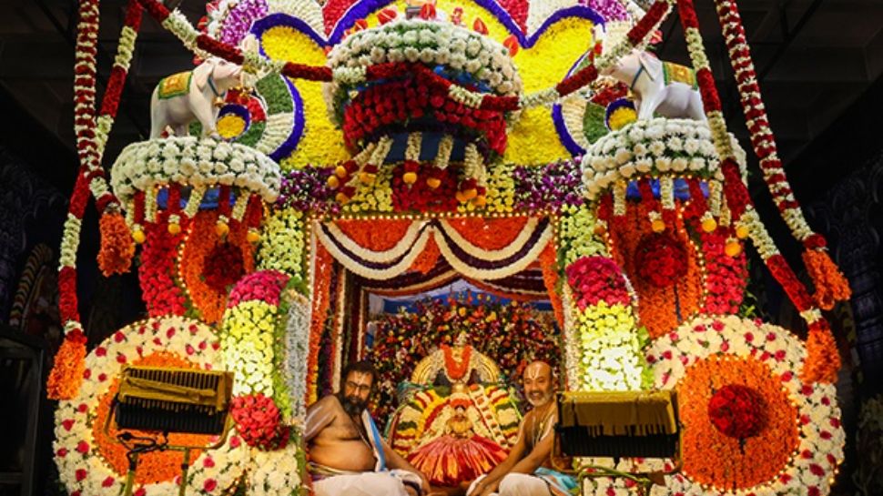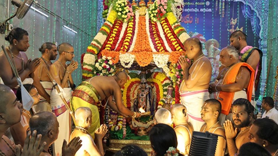 భక్తులు అడుగడుగునా కర్పూర హారతులు సమర్పించి స్వామి వారిని దర్శించుకున్నారు. వాహన సేవలో శ్రీశ్రీశ్రీ పెద్ద జీయర్, చిన్న జీయర్ స్వామితో పాటు ఈఓ శ్రీమతి నాగరత్న తదితరులు పాల్గొన్నారు. శ్రీ విశ్వావసు నామ సంవత్సరం సందర్భంగా టీటీడీ అనుబంధాలయాల్లో ఘనంగా ఉగాది వేడుకలు నిర్వహించారు.