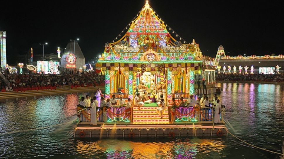 ఇక తెప్పలను దేదీప్యమానంగా విద్యుద్దీపాలతో అలంకరించి స్వామి వారిని పుష్కరిణిలో మూడుసార్లు విహరించి భక్తులను కటాక్షించారు. అయితే రేపు మూడవరోజు శ్రీ భూదేవి శ్రీదేవి సమేతంగా మలయప్ప స్వామి వారిగా అభయం ఇవ్వనున్నారు.