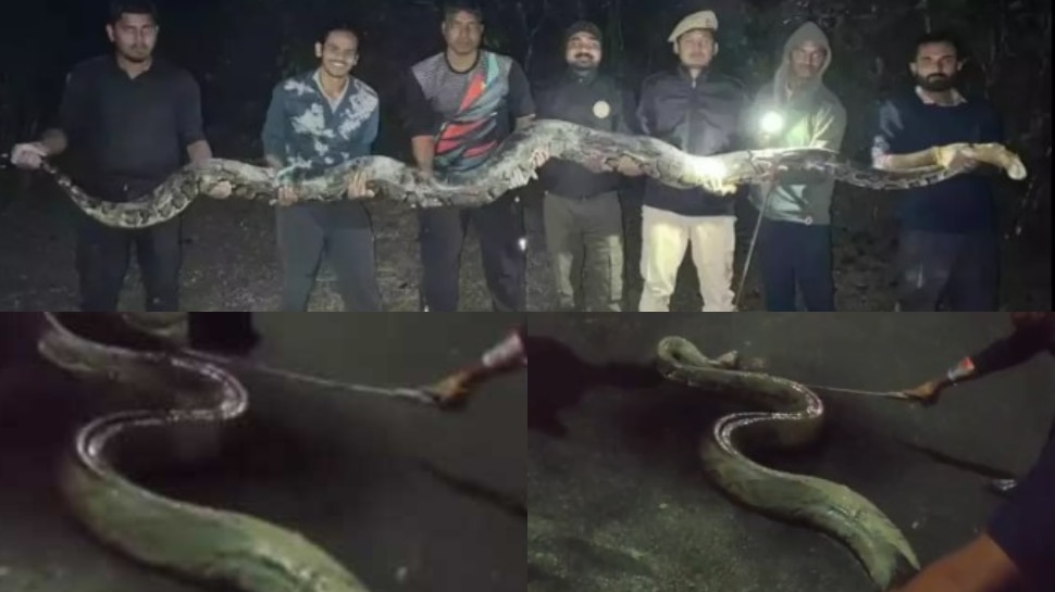 In a remarkable rescue operation, herpetologists Trikal Chakraborty and Vishal Sonar, assisted by Assam University students, successfully rescued a massive 17-foot-long, 100kg Burmese python from near the AU girls' hostel at 11:45 pm on Wednesday.