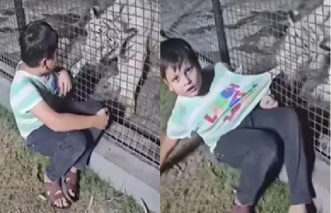 Tiger and Child Video: పులి, సింహాలు కన్పిస్తే ఎవరైనా భయపడిపోతుంటారు. జూలో కూడా అంత దూరం నుంచే చూస్తారు. దగ్గరకు వెళ్లేందుకు సాహసించరు. కానీ ఈ పిల్లోడు మాత్రం అందుకు అతీతం. ఏకంగా పెద్ద పులి నోటికి చిక్కినా సరే...ఆ కుర్రోడిలో పులి భయం కన్పించడం లేదు. అమ్మ భయం పట్టుకుది. అందుకే ఆ పులితో పేచీకు దిగాడు. అందుకే ఈ వీడియో తెగ వైరల్ అవుతోంది.