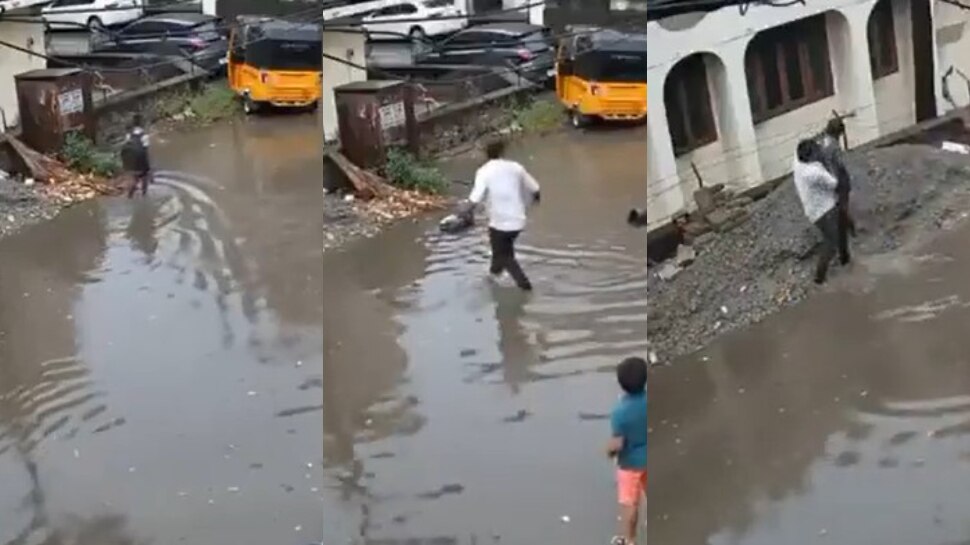 Chennai man rescued boy from electrocution video: కొన్నిరోజులుగా వర్షాలు చెన్నై నగరానికి చుక్కలు చూపిస్తున్నాయి. ఇప్పటికే వర్షాల వల్ల సాధారణ జనజీవనం అస్తవ్యస్తంగా మారిపోయింది. ఈ క్రమంలో ప్రస్తుతం కుండ పోత వర్షాల వల్ల రోడ్ల మీద ఎక్కడికక్కడ నీళ్లు నిలిచిపోయి ఉంటున్నాయి. మొత్తంగా జనాలు ఇంటి నుంచి అడుగుపెట్టేందుకు కూడా భయపడిపోతున్నారు.