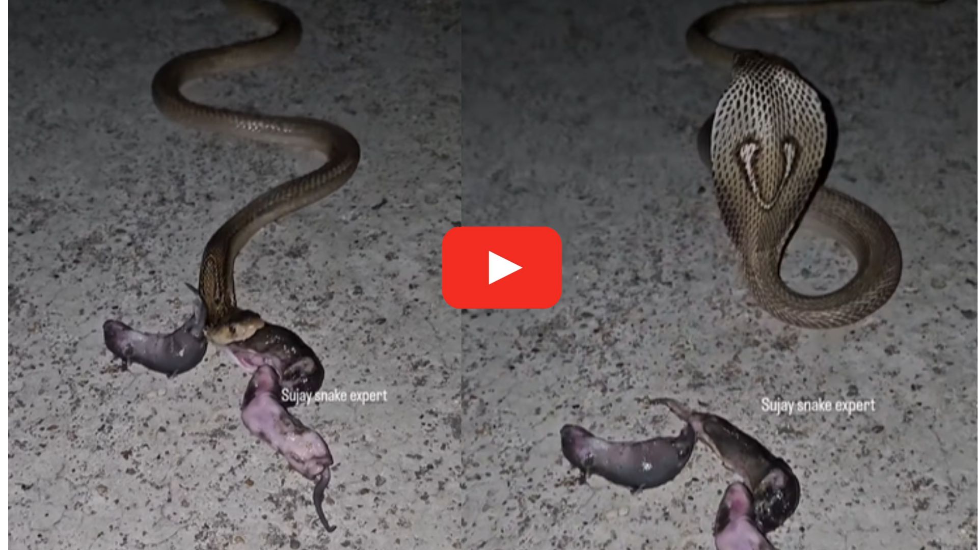 King Cobra Viral Video Watch Now: సాధారణంగా పాములు చాలా ప్రమాదకరం. ముఖ్యంగా నాగుపాముల గురించి అయితే చెప్పనక్కర్లేదు.. ఇవి ఏ జంతువుల పైన దాడి చేస్తే తప్పకుండా వాటిని ఆహారంగా మలుచుకునే వరకు పోరాడుతూనే ఉంటాయి. నాగుపాములు ఎప్పుడు మాంసంతో కూడిన ఆహారాలను మాత్రమే తినేందుకు ఆసక్తి చూపుతాయి. ముఖ్యంగా కొన్ని నాగుపాములయితే పక్షులను, క్రిమి కీటకాలను తింటే.. మరికొన్ని కోబ్రాలు పక్షుల గుడ్లు, చిన్నచిన్న ఎలుకలు, కుందేళ్లను తింటూ ఉంటాయి. తాజాగా ఇలాంటి ఆహారం తింటున్న ఓ పాముకు సంబంధించిన వీడియోనే ఇప్పుడు సోషల్ మీడియాలో వైరల్ గా మారింది. ఇంతకీ ఈ వీడియో ఏంటో దీనికి సంబంధించిన పూర్తి వివరాలు ఇప్పుడు తెలుసుకుందాం.