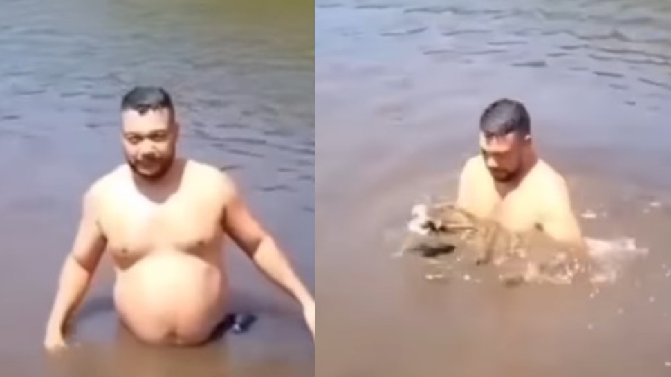 వైరల్ అవుతున్న వీడియోలో.. ఒక వ్యక్తి స్నానానికి నదిలోకి దిగాడు. అయితే.. అతని కాళ్ల దగ్గర ఏదో.. కదులుతున్నట్లు అన్పించింది. వెంటనే.. అతను ఏదో చేప అనుకున్నాడు.కానీ ఎందుకన్న మంచిదని.. మెల్లగా కాళ్లదగ్గర అసలు ఏముందని మెల్లగా నీళ్లలోకి చేతులు పెట్టి బైటకు తీశాడు.