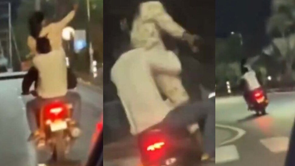యువకుల ఇద్దరి మధ్యలో యువతి ఉంది.. ఆమె రన్నింగ్ బైక్ మీద లేచి నిలబడి.. కారులో పక్కనుంచి వెళ్తున్నవారికి ఫ్లయింగ్ కిస్ లు ఇస్తుంది. ఈ వీడియోను కారులో ఉన్న వారు రికార్డు చేసి సోషల్ మీడియాలో పోస్ట్ చేశారు. ప్రస్తుతం ఇది వైరల్గా మారింది. దీనిపై నెటిజన్లు మండిపడుతున్నారు. దీనిపై చర్యలు తీసుకొవాలని డిమాండ్ చేస్తున్నారు.