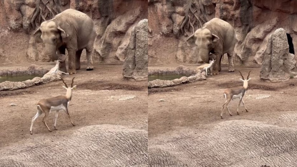 Elephant rescued drowning gazelle at zoo emotion video: సాధారణంగా మన చుట్టుపక్కలకొంత మంది మనుషుల్లో మానవత్వం పోయిందని చెప్పుకొవచ్చు. ఎవరైన ప్రమాదంలో ఉండే వాళ్లను అస్సలు పట్టించుకోరు. మనం తరచుగా రోడ్ల మీద వెళ్లినప్పుడు కొన్నిసార్లు అనుకొని ప్రమాదాలు జరుగుతాయి. చాలా తక్కువ మంది అలాంటి సమయంలో స్పందిస్తారు. తమకు ఏంపని అంటూ మరికొంత మంది వెళ్లిపొతుంటారు.